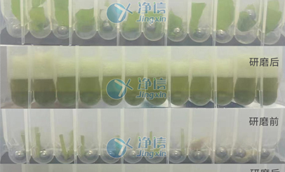 實(shí)驗(yàn)樣品:本次實(shí)驗(yàn)樣品為水稻葉片,此次選用凈信多樣品組織研磨進(jìn)行前處理操作,提取RNA實(shí)驗(yàn)。實(shí)驗(yàn)?zāi)康模褐参锖怂崽崛∈且粋€(gè)通過簡(jiǎn)易化、可操作性的手段獲取“pure” DNA和RNA的過程。植物組織越幼嫩新鮮所含的次生代謝產(chǎn)物越少,隨著植物組織的逐漸成熟,次生代謝產(chǎn)物的含量會(huì)逐漸增多。
