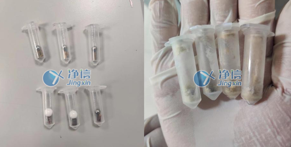上圖為1分鐘的研磨效果,已經(jīng)完全研磨完成,達到老師預期效果。研磨管一次可以做24個樣品,經(jīng)過全自動冷凍組織研磨儀的研磨處理后,蘋果樹枝條能夠快速被研磨成細小的顆粒,從而方便后續(xù)的分析。同時,該研磨儀的運行過程中不會引入外界污染,從而保證了樣品的純度。經(jīng)過多次了解和對比所以老師們選用凈信研磨儀代替人工處理。效率高,效果好。成功的解決了老師的研磨問題。