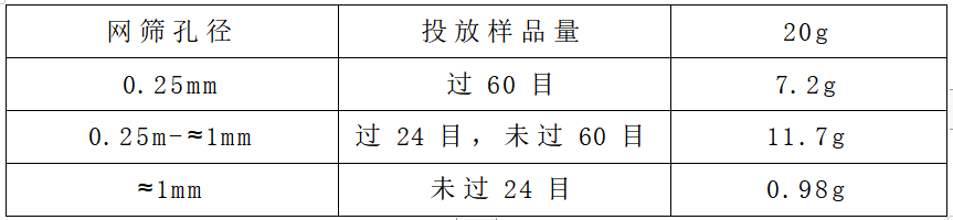 1.過(guò)60目網(wǎng)篩的通過(guò)率為78.24%;