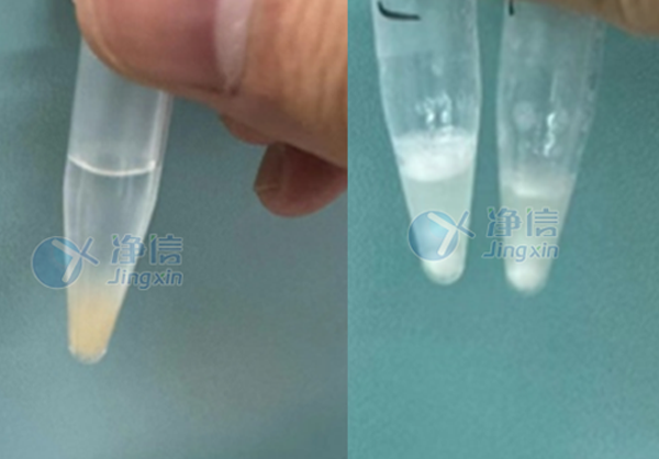 從研磨對(duì)比圖中,可清晰的看到蜱蟲(chóng)被充分研磨,后續(xù)進(jìn)行離心,離心后分為三層,上層為水相,下層為有機(jī)相,中層是我們要提取的蛋白質(zhì)。