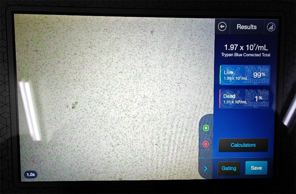 顯微鏡觀察細胞,使用染色緩沖液重懸細胞調(diào)整細胞濃度,吸取細胞懸液至流式管中,準備染色