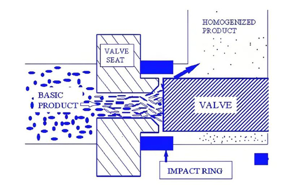 高壓物料通過均質(zhì)閥組件時,產(chǎn)生以下三種均質(zhì)效應: