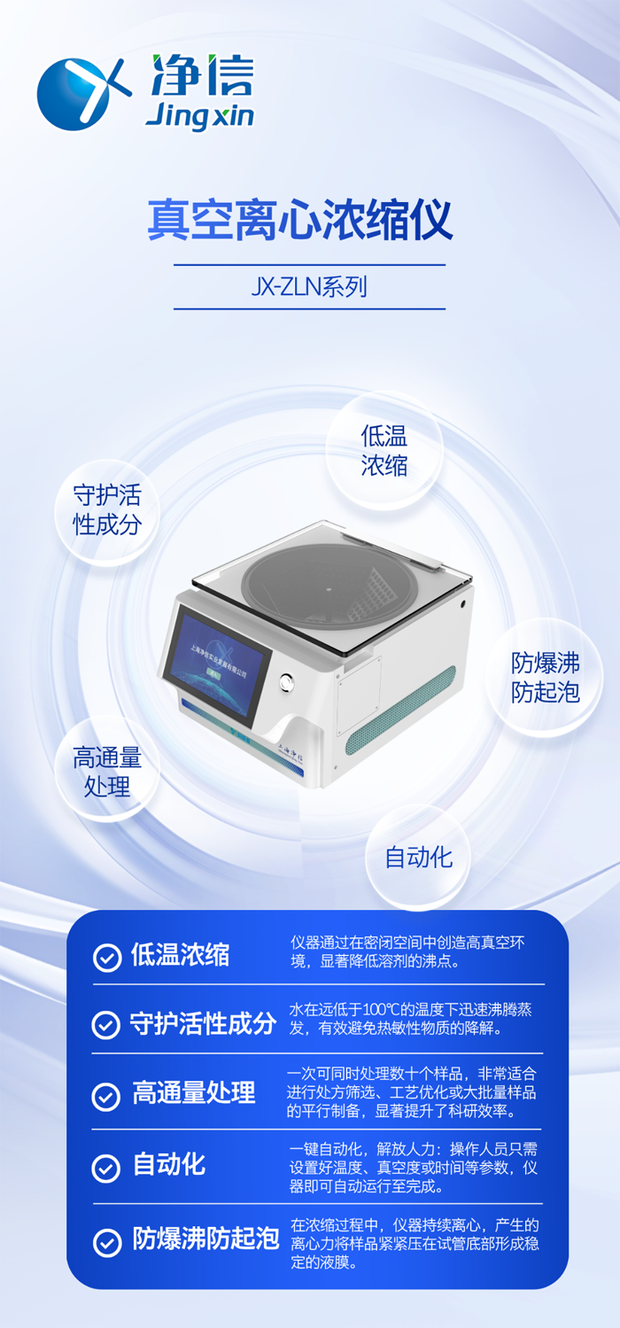真空離心濃縮技術(shù)的出現(xiàn),提供了解決方案。凈信真空離心濃縮儀集真空、離心、加熱三大技術(shù)于一體,其優(yōu)勢(shì)正是針對(duì)傳統(tǒng)方法的痛點(diǎn)而來(lái)。