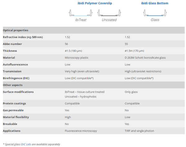 ibidi Polymer Coverslip vs. ibidi Glass Bottom