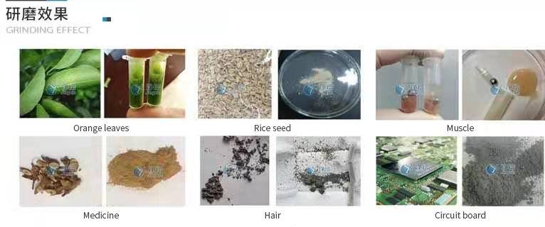 Cryogenic grinder sample range: animal and plant tissues, microorganisms, rock minerals, soil, medicine, chemical polymers, etc.