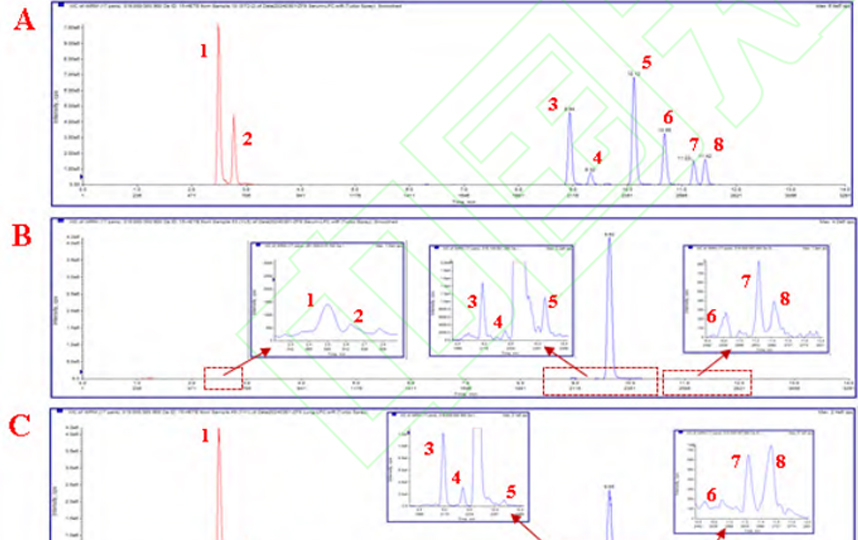 在此基礎(chǔ)上通過超高通量組織研磨儀和真空離心濃縮儀進(jìn)行優(yōu)化實驗步驟,超高通量組織研磨儀使樣品均質(zhì)化更徹底,方便后續(xù)萃取;真空離心濃縮儀補充了溶液蒸發(fā)過程中的爆沸,減去了添加飽和NaCl的步驟,減少后續(xù)離子干擾,使本實驗方法更快速安全,靈敏準(zhǔn)確。