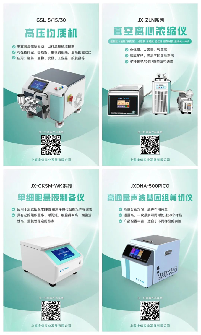 上海凈信科研者系列產(chǎn)品的上市推廣,包括真空離心濃縮儀、高壓均質(zhì)機、單細胞懸液制備儀、高通量聲波基因組剪切儀等,標志著公司從單一產(chǎn)品向多元化發(fā)展的轉(zhuǎn)變,拓展了市場影響力。更是了體現(xiàn)了上海凈信在實驗室設(shè)備領(lǐng)域的專業(yè)性和技術(shù)實力,能夠滿足不同科研和工業(yè)應(yīng)用的需求。